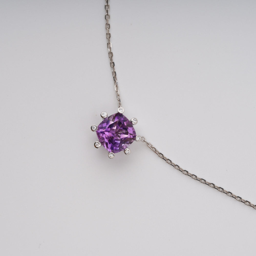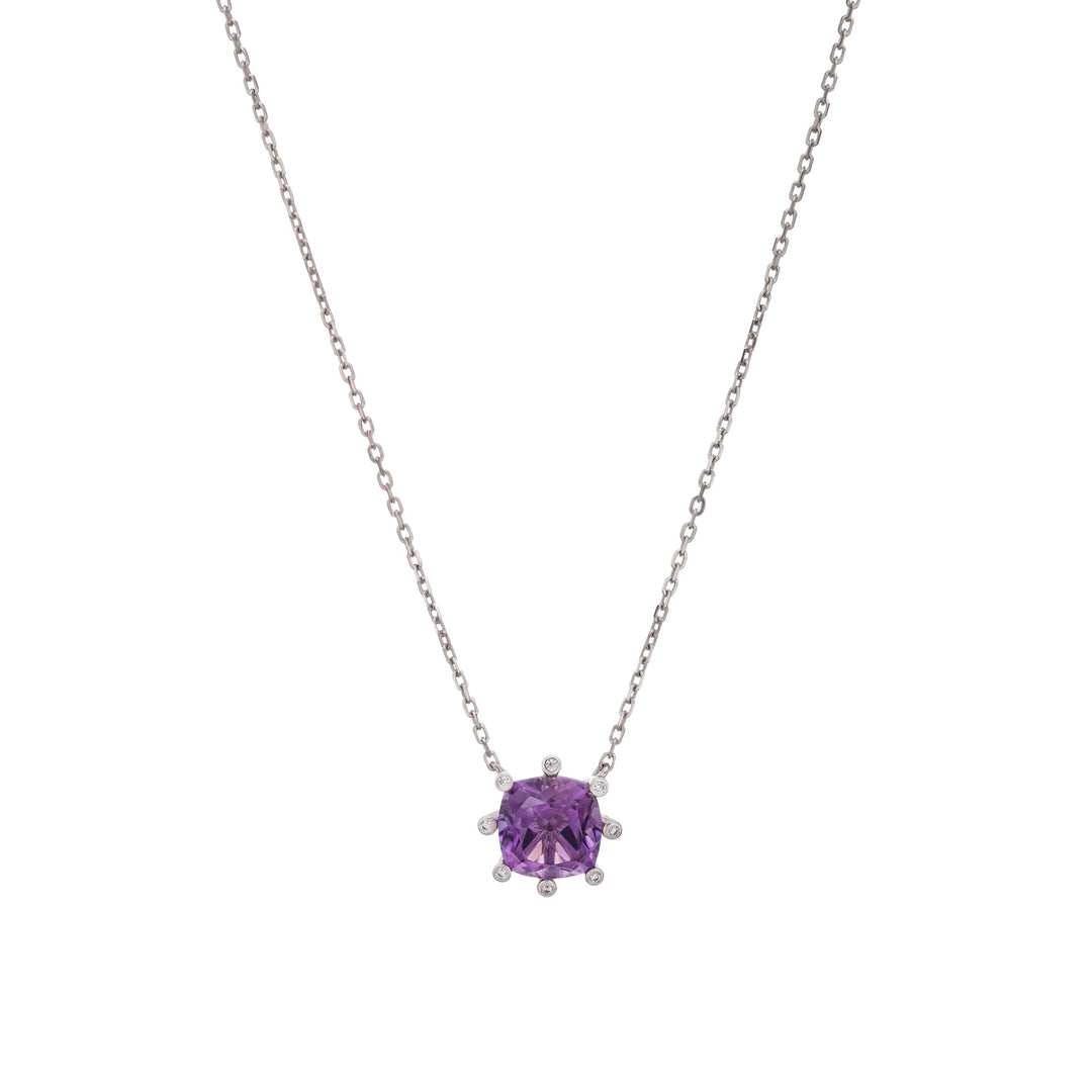 Giannetta Purple Square Cut Gemstone Pendant Sterling Silver Necklace