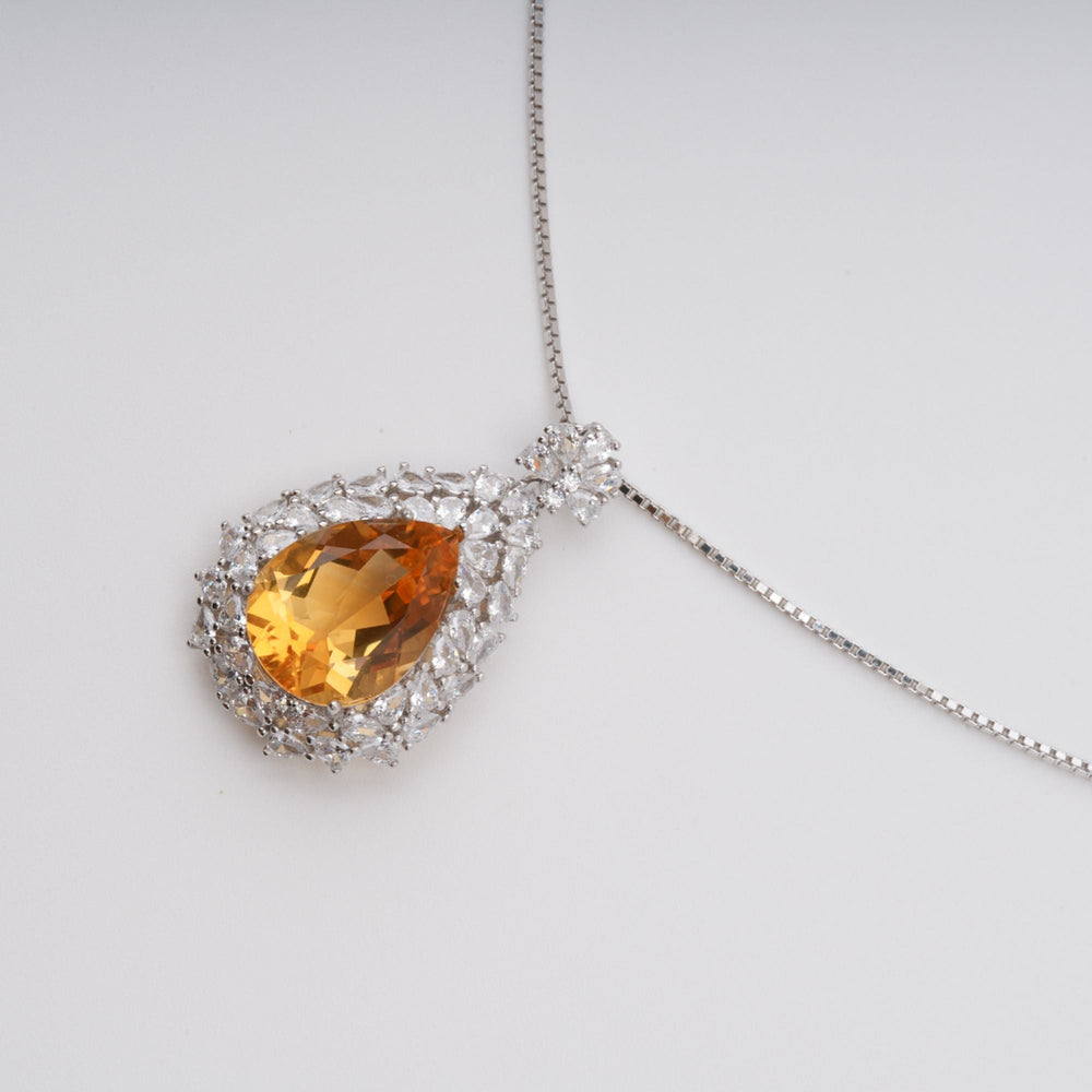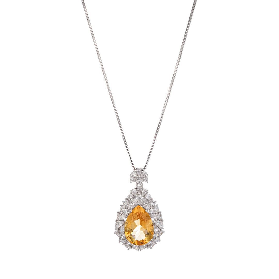 Giolla Yellow Teardrop Shaped Gemstone Pendant Sterling Silver Necklace